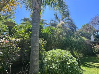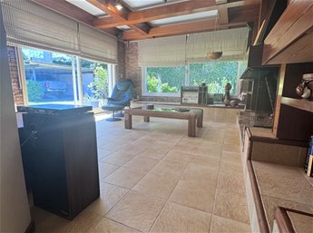 Estar con estufa a leña y salida al fondo con sol toda la tarde, orientación norte.